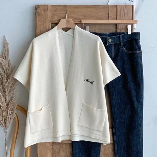 여성 루즈핏 군살커버 오픈 포켓 반팔 가디건 DGB-WCD-4733-아이보리