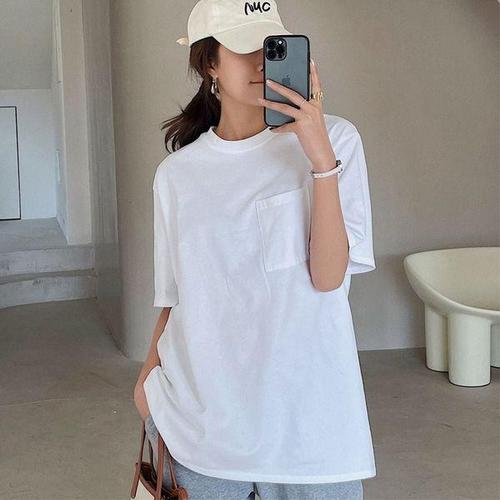 [에이치플러스몰]오버핏 코튼 여성 포켓 베이직 반팔티
