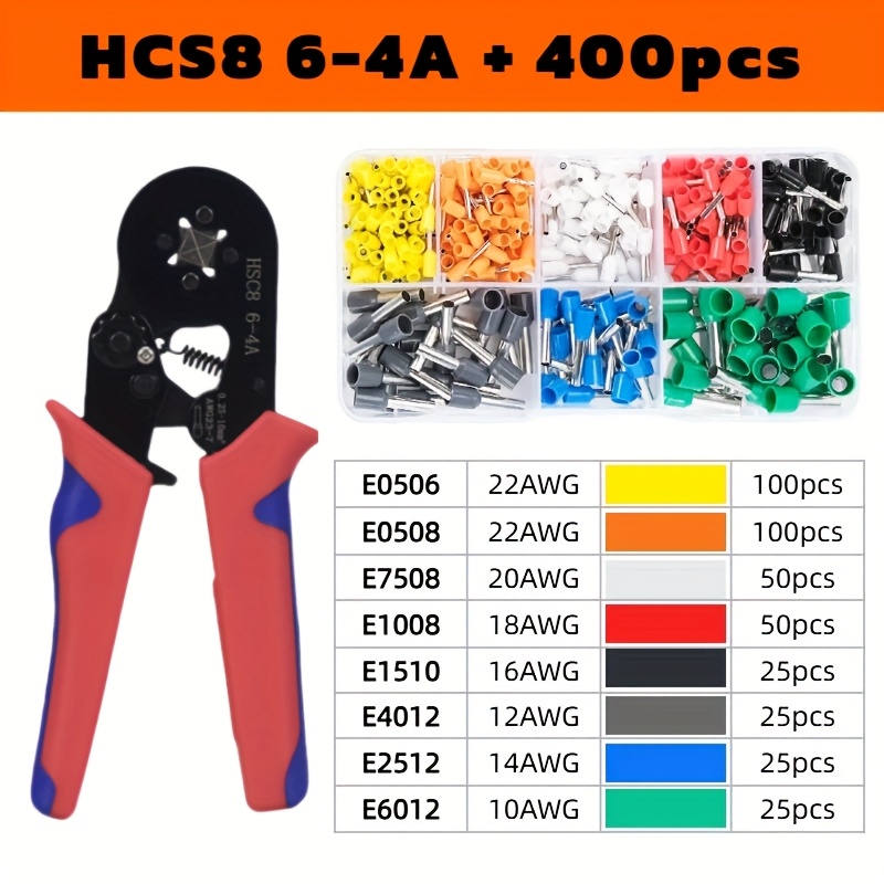 TEMU 전선 페룰 압착 공구 키트 | 4각 자동 조절 AWG23-7 사양 전기 단자, 오디오 및 자동차용 라쳇 플라이어