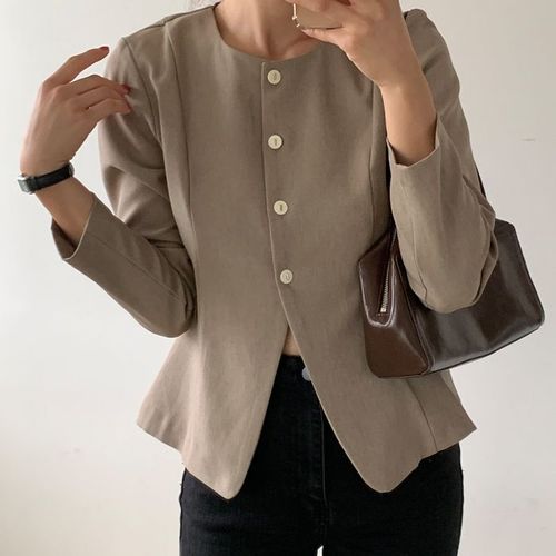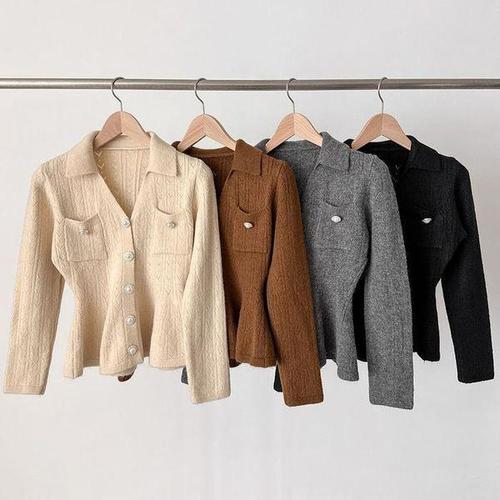 [다잇템_패션]여성 진주단추 카디건 카라 페플럼 디자인