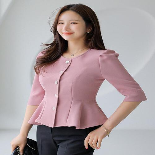 [스타일온미][스타일온미] 로로코 완벽 슬림 라인 7부소매 페플럼 블라우스