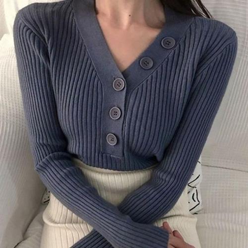 [엄지척]여성니트 봄가을 데일리 슬림핏 골지 니트티 단추포인_19677811_667501
