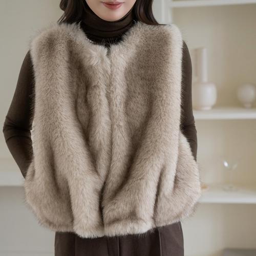 지고다그 여성 고급스러운 폭스퍼 스타일 따뜻한 무스탕 조끼 아우터 SX71452
