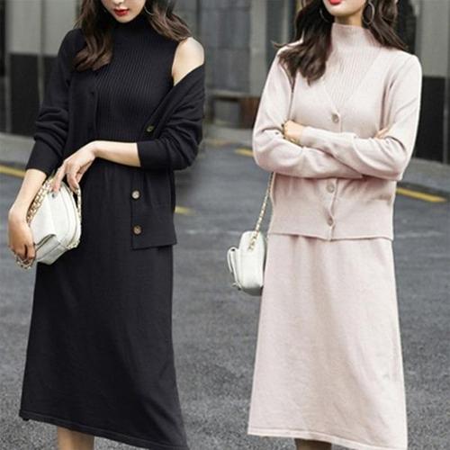 [엄지척]여자 반폴라 민소매 원피스 가디건 패션 코디 세트_19556632_667501