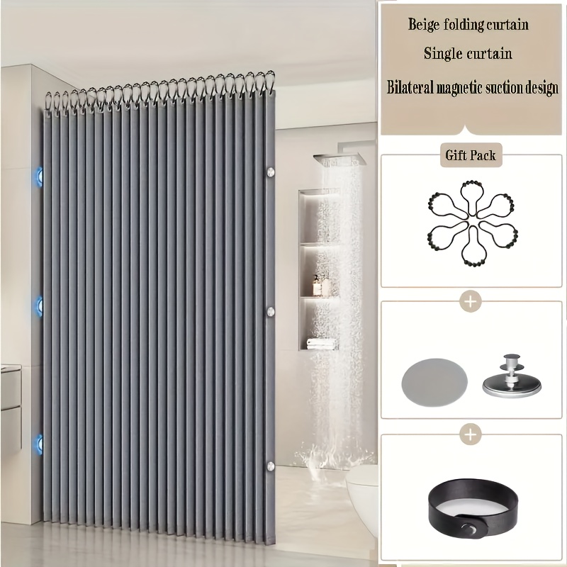 TEMU 접이식 샤워커튼, 세련된 그레이 테마, 다양한 사이즈, 양면 자석 디자인, 욕실 전체에 편안함 제공, 후크 및 타이백 포함|샤워커튼