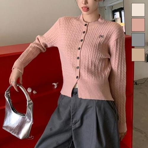 |CCJ6D0A|여성 슬림핏 케이블 니트 크롭 가디건 폴리 소재