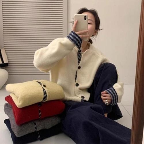 [다잇템][다잇템] 여자 체크포인트 U넥 세미루즈핏 폴리 가디건_24548594_588872
