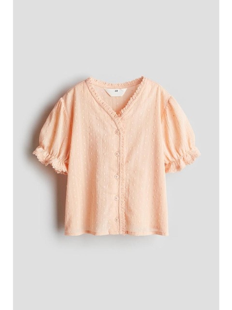 [에이치엔엠] 레이스 트리밍 코튼 블라우스 피치 핑크 1285814002