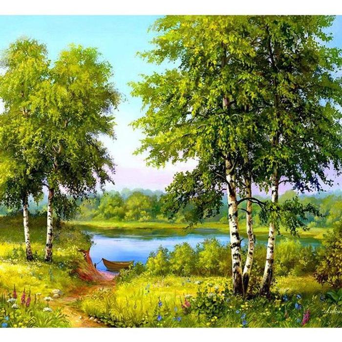 [RGL5R6SR]호숫가의 풍경 캔버스 보석십자수 40x50