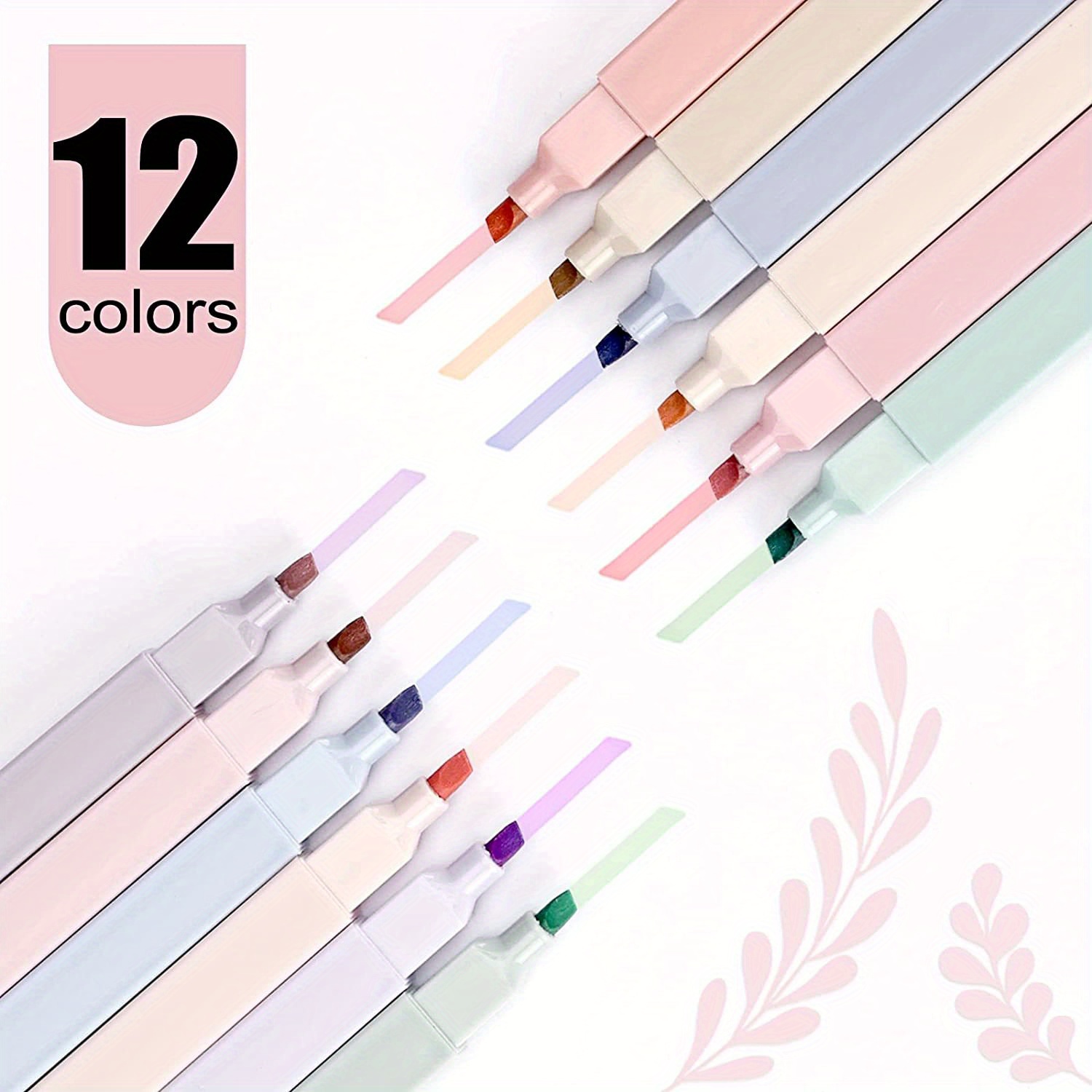 TEMU 12개 사각 형광 마커, , 드로잉, 수채화, 학생 플래너, 창의적인 컬러 하이라이터