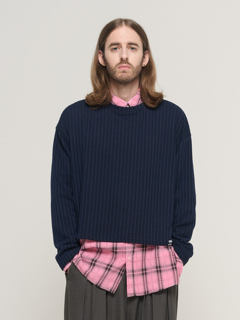[피팅남]남자 릴로 오버핏 스트라이프 앙고라 라운드 니트