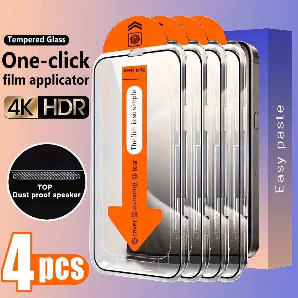 아이폰 17 프로 맥스용 고화질 스크린 보호필름 4개, 자동 먼지 제거 기능, 기포 없는 부착