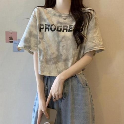 여성 하트 영문 프린팅 크롭 반팔티 URD-207