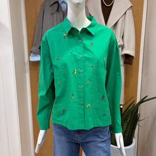 클리지 DP01 그린 프린팅 핀턱 셔츠 입니다 CQ3WBL14
