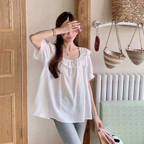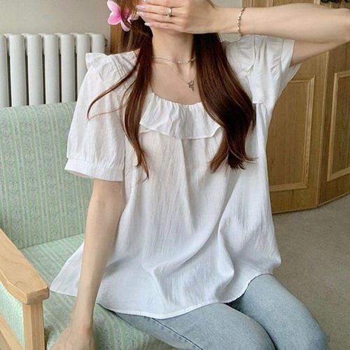 [오너클랜]인기상품 스퀘어넥 반팔 프릴 여성용 데일리 블라우스 [WFLLK24_260305]
