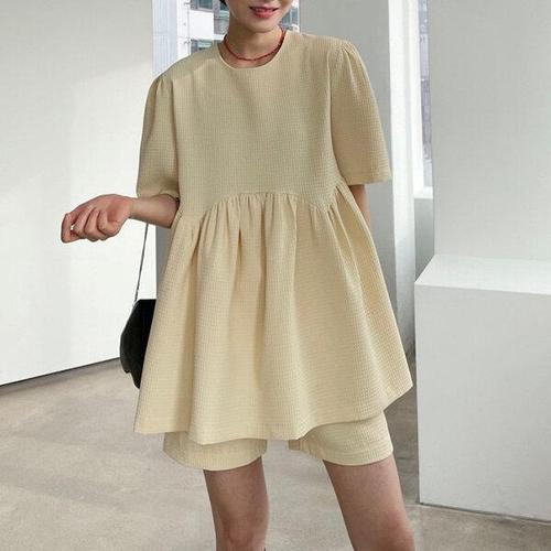 [굿쇼핑몰_의류]2컬러 모던 시크 프릴 반팔 블라우스 반바지 세트