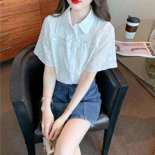 [오너클랜]인기상품 여성 반팔 카라 자수 블라우스 여름 데일리 캐주얼 프릴 셔츠 [WFLLKNP_260305]