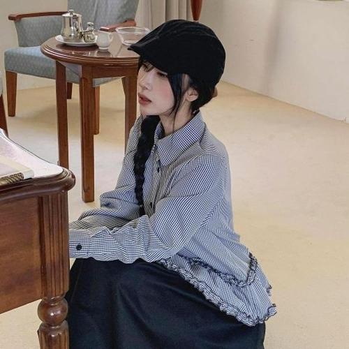 [다잇템][다잇템] 여자 코디 밑단 프릴 잔체크 카라 셔츠_24548908_588872