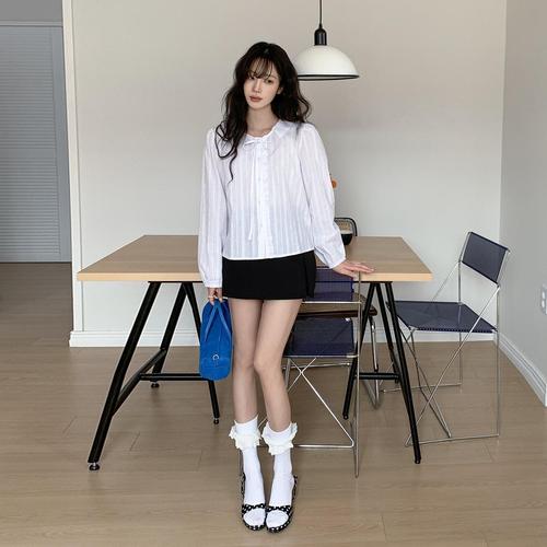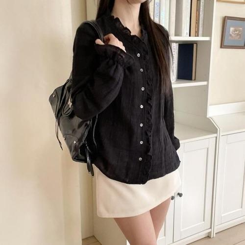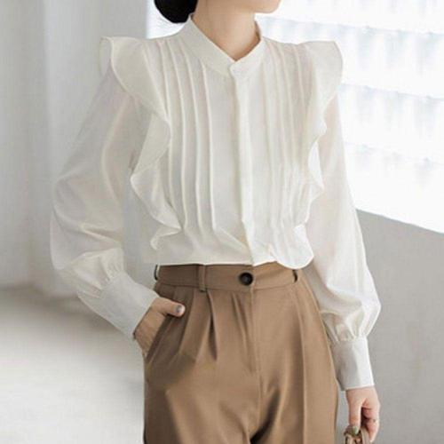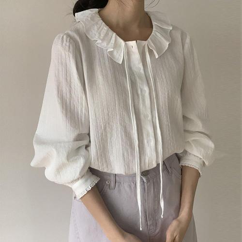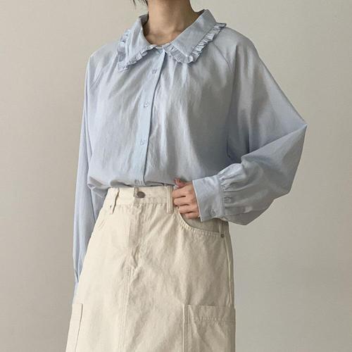 [문에이블]문에이블 여자 여성 봄 가을 루즈핏 카라 프릴 베이직 하객룩 오피스룩 출근룩 셔츠 블라우스