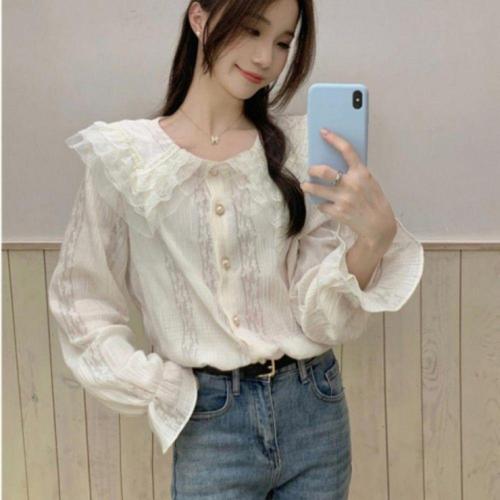 [오너클랜]인기상품 여성용 카라 레이스 프릴 긴팔 셔츠 데이트 블라우스 [WFLL8VK_260304]