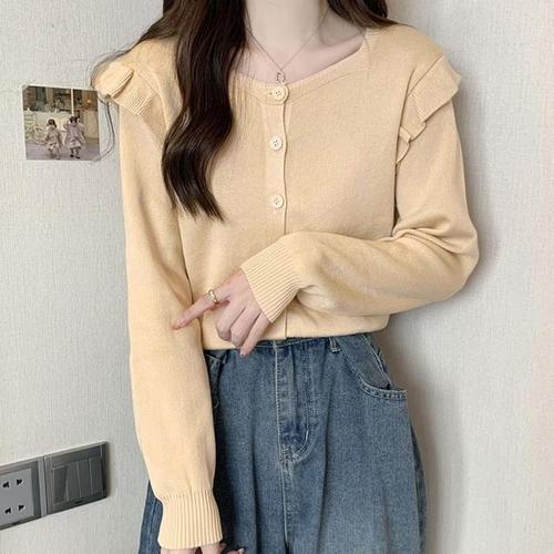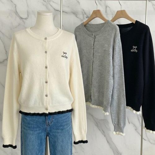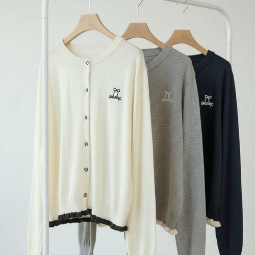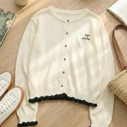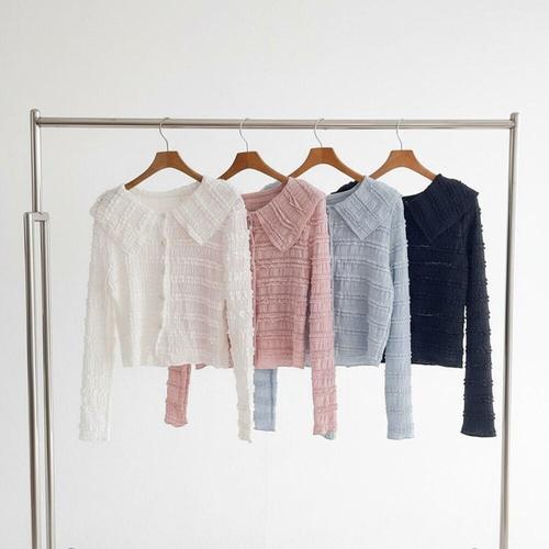 Destijl HC06 부드럽고 깔끔한 니트티형 프릴 라운드 니트 진주가디건 D2613cr01
