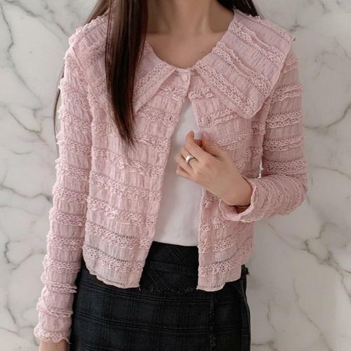 [미라클세븐]여성 봄철 벚꽃 스타일 펀칭 프릴 레이스 카라 가디건