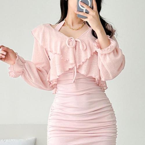 [다잇템]여자 탱크 짧은 프릴 숏가디건 롱슬리브 가디건 (10892729A)