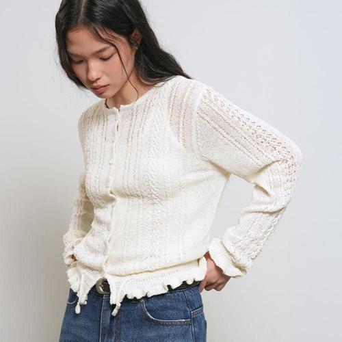 [제너럴아이디어]WOMAN 부클레 펀칭 프릴 가디건 [IVORY] / GF1LKC523