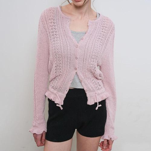 [제너럴아이디어]WOMAN 부클레 펀칭 프릴 가디건 [PINK] / GF1LKC523