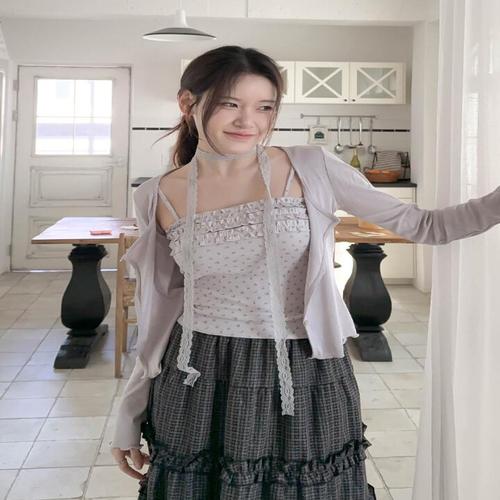 [엘루이즈][엘루이즈] [3set] 비올리 잔꽃 프릴 나시 가디건 레이스 초커 스카프 세트(3color)
