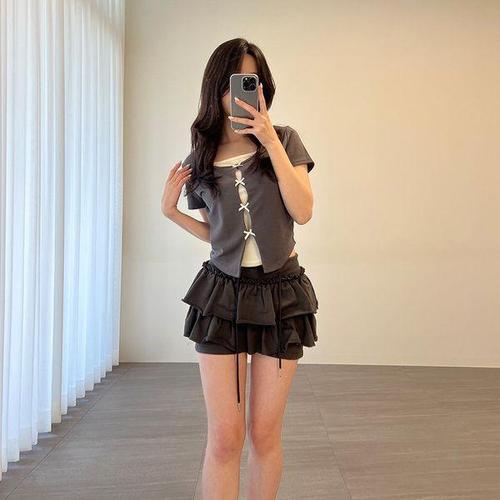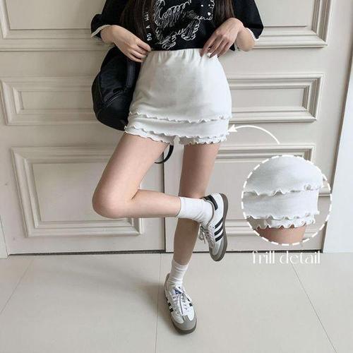 [미라클세븐]여성 레이어드 프릴 숏팬츠 밴딩 4부 치마바지