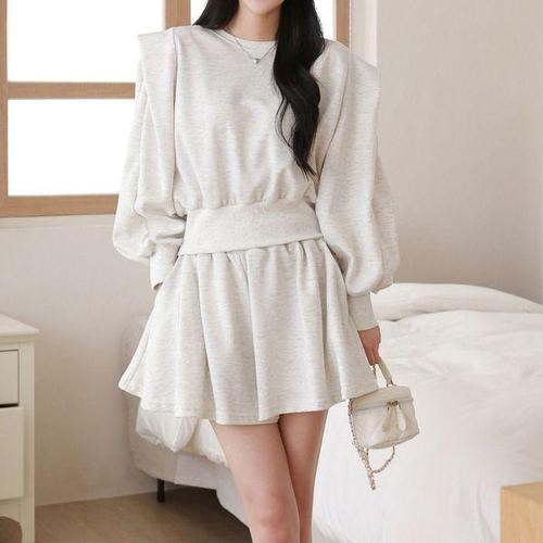 [에이치플러스몰]프릴 맨투맨티 치마바지 세트 LL-S108