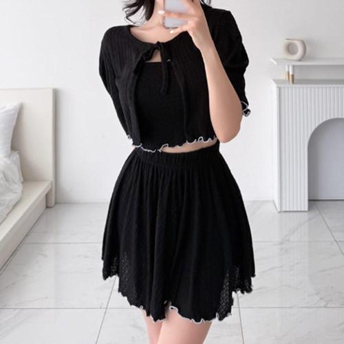 [옷자락]여성 여리핏 리본 가디건 나시와 프릴 치마바지 세트