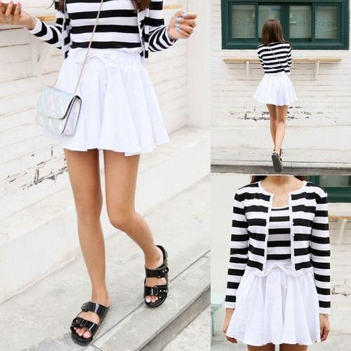 [옷자락] 여성 여리핏 리본 가디건 나시와 프릴 치마바지 세트