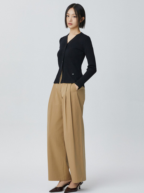 [플라스틱아일랜드] 브이넥 골지 리브드 니트 가디건 PR4KG063