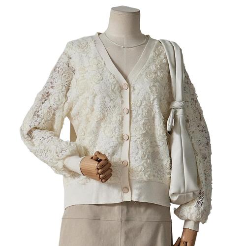 패션스타일 레이스 니트 숏 여리여리 여자 라운드 롱 봄 플라워 가디건 스타일 패턴 여성