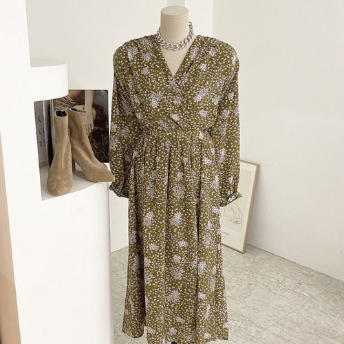 [페이릿][페이릿] [88까지]쥬엘 플라워 나염 브이넥 롱원피스
