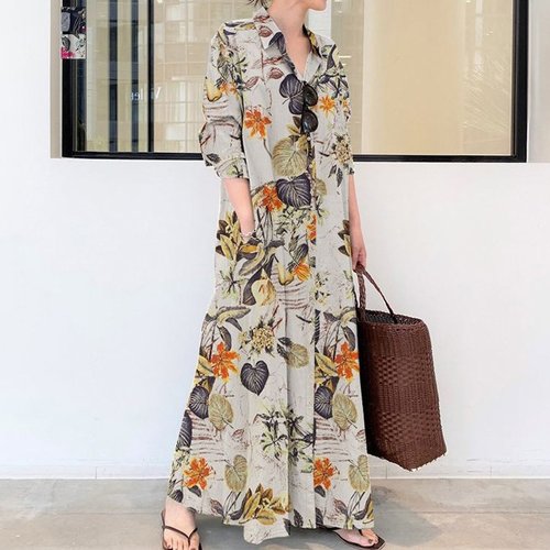 [퀸이즈] 저시 오버핏 플라워 나염 셔츠 롱 원피스