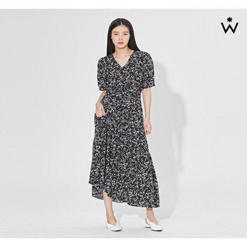 [위시드]V넥 버튼 플라워 나염 반팔 롱 원피스 (WIAAOP214)