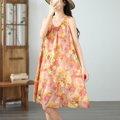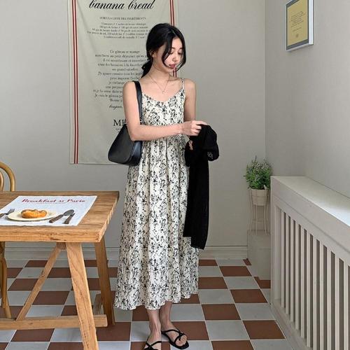 이푼아이 민소매 꽃나염 나시 롱 원피스