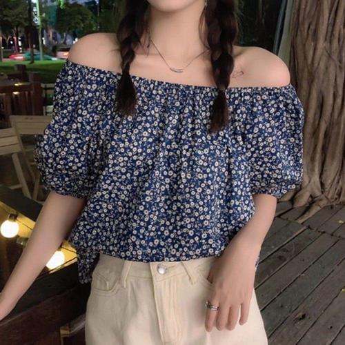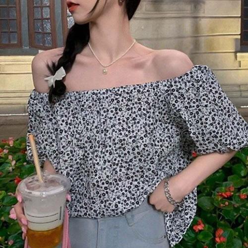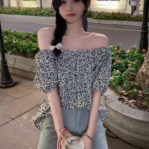 러블리 플라워 오프숄더 퍼프 반팔 블라우스