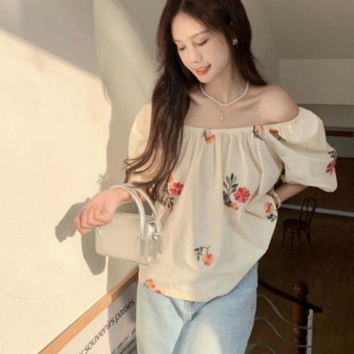 여름블라우스 티셔츠 여름 패션 블라우스 반팔 플라워 오프숄더 반