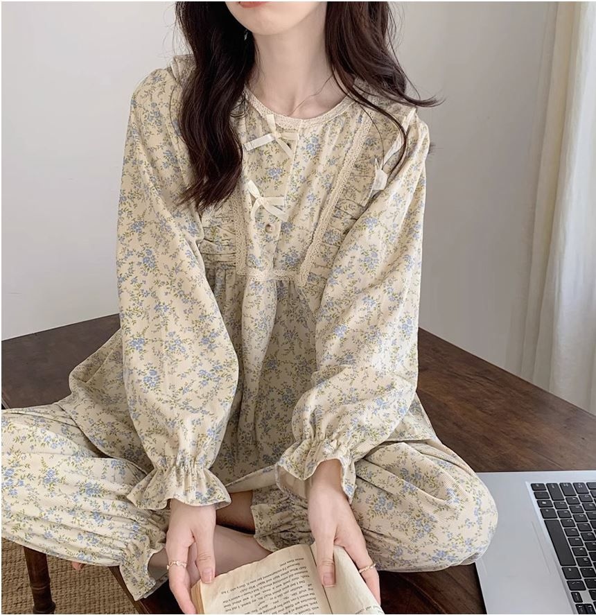 러블리함 가득 프렌치 플라워 파자마 투피스 긴팔 긴바지 감성 가을 잠옷 바지