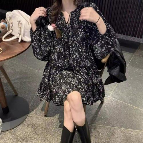 [오너클랜]인기상품 미니 쉬폰 봄가을 플라워 패턴 데이트 원피스 [WFLL8DO_260304]