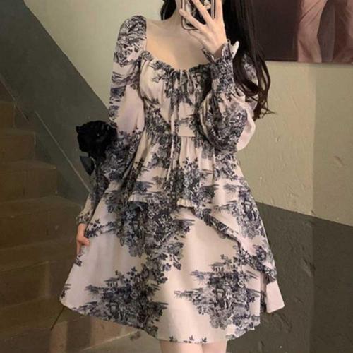 [모노무드]모노무드 프릴 플라워패턴 긴팔 플리츠 미니원피스 데이트룩
