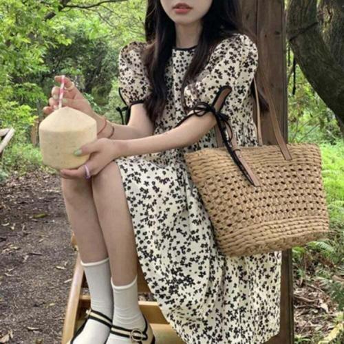 여성 러블리 미니원피스 퍼프소매 플라워패턴 여름