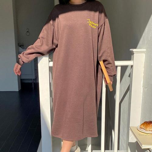여성 여름 루즈핏 박스핏 브이넥 플라워 면 롱 원피스