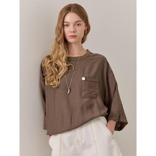 [마쟈]플라워 버튼 스티치 포켓 스트링 블라우스