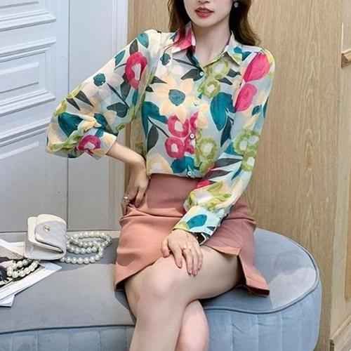 [엄지척]시스루 긴팔 블라우스 빅플라워 프린팅 블라우스_19660042_667501