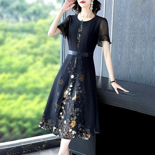 [모슬린]엄마옷 플라워 쉬폰 주름 원피스 613FGH465 마담/중년여성/빅사이즈/50대/60대